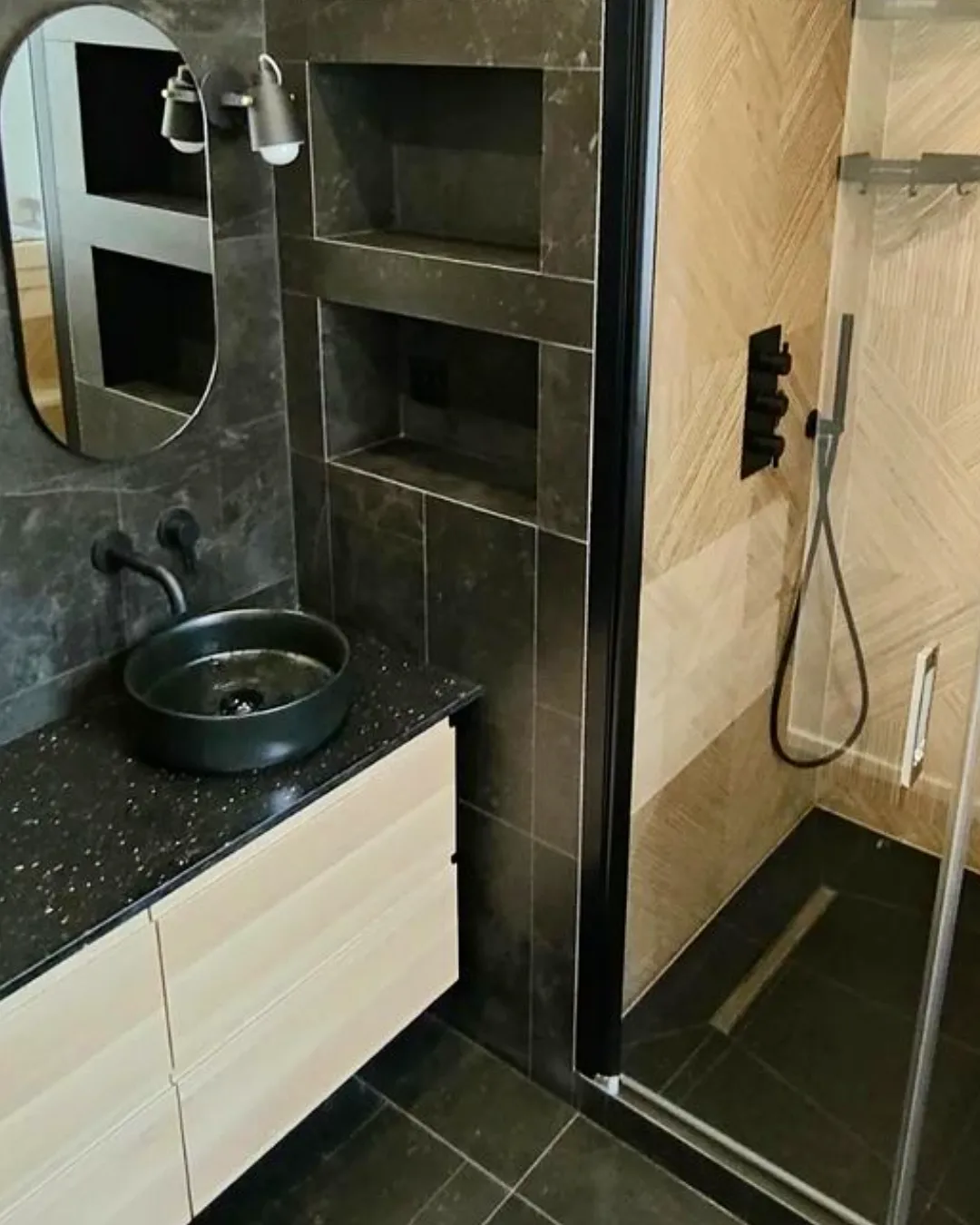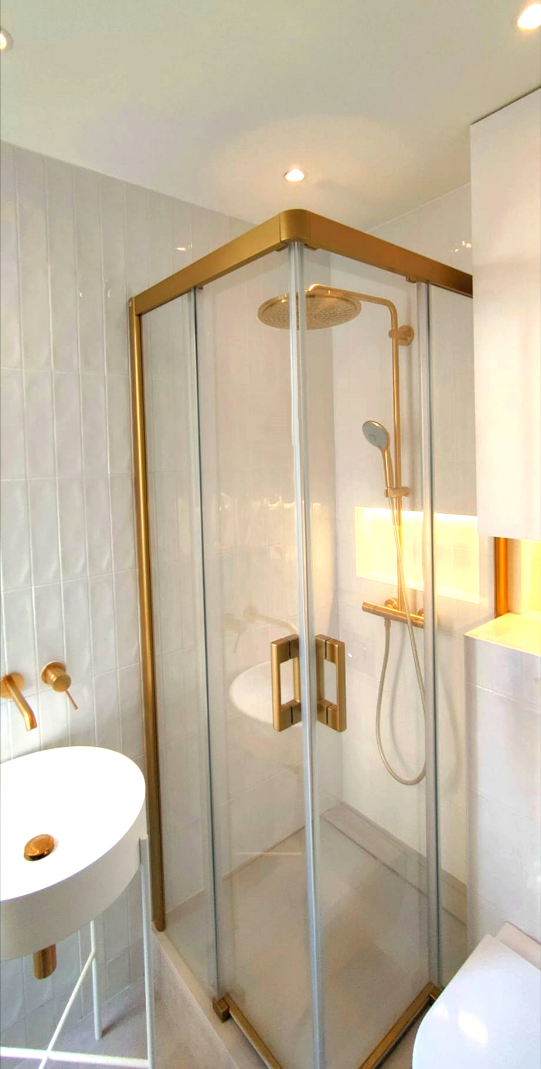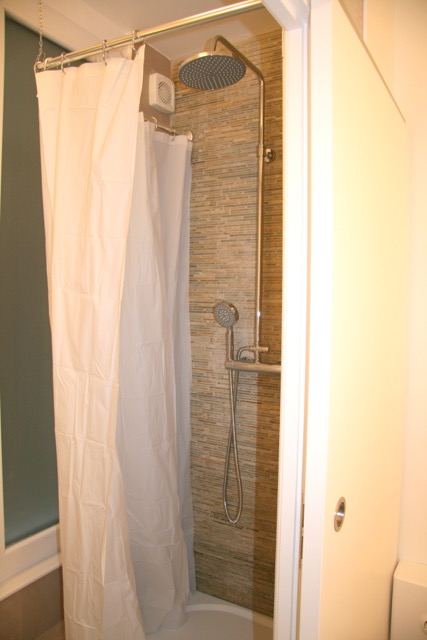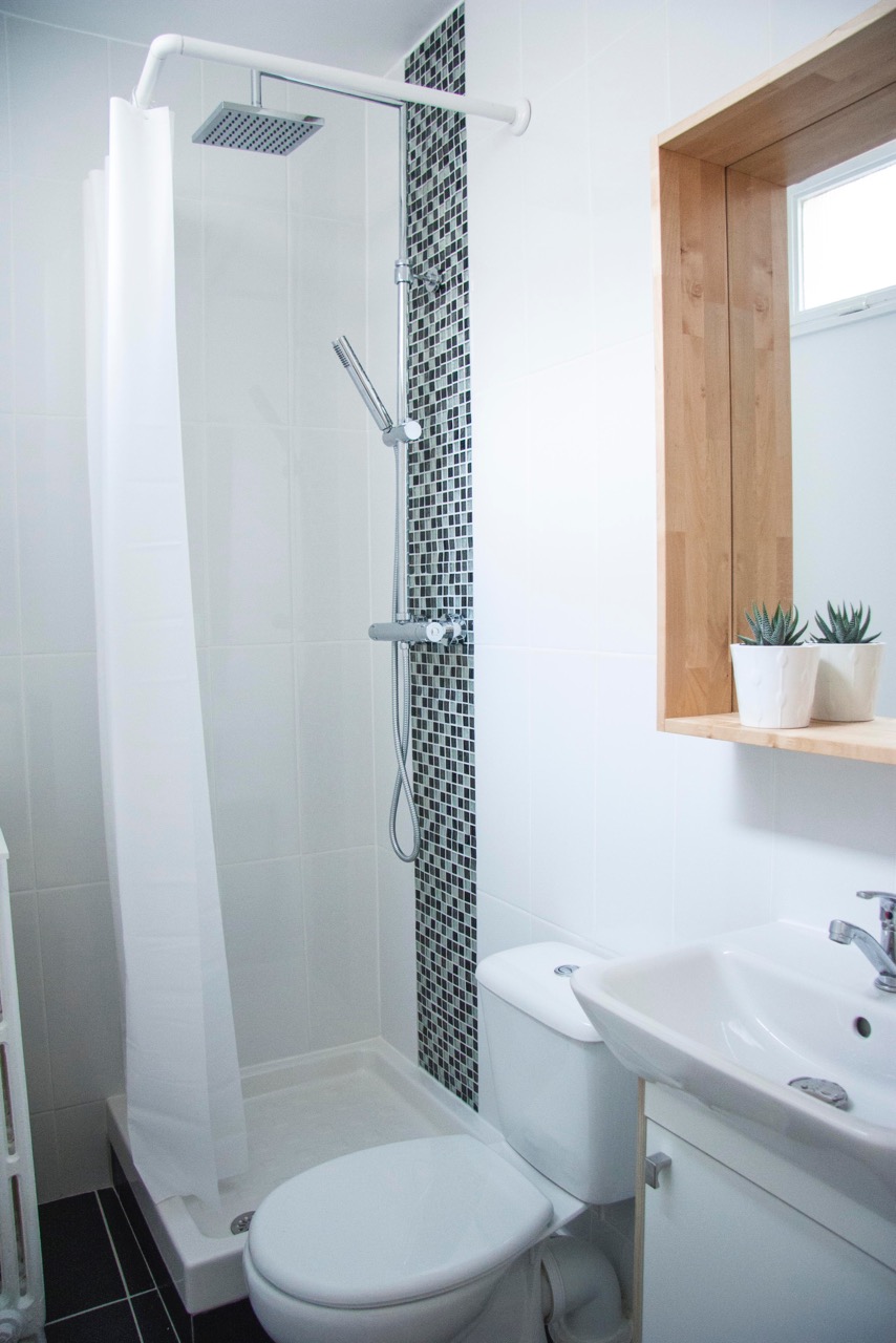 - Évitez le rideau de douche classique, mieux investir dans une porte coulissante transparente, en laissant ainsi passer la lumière dans votre coin détente.