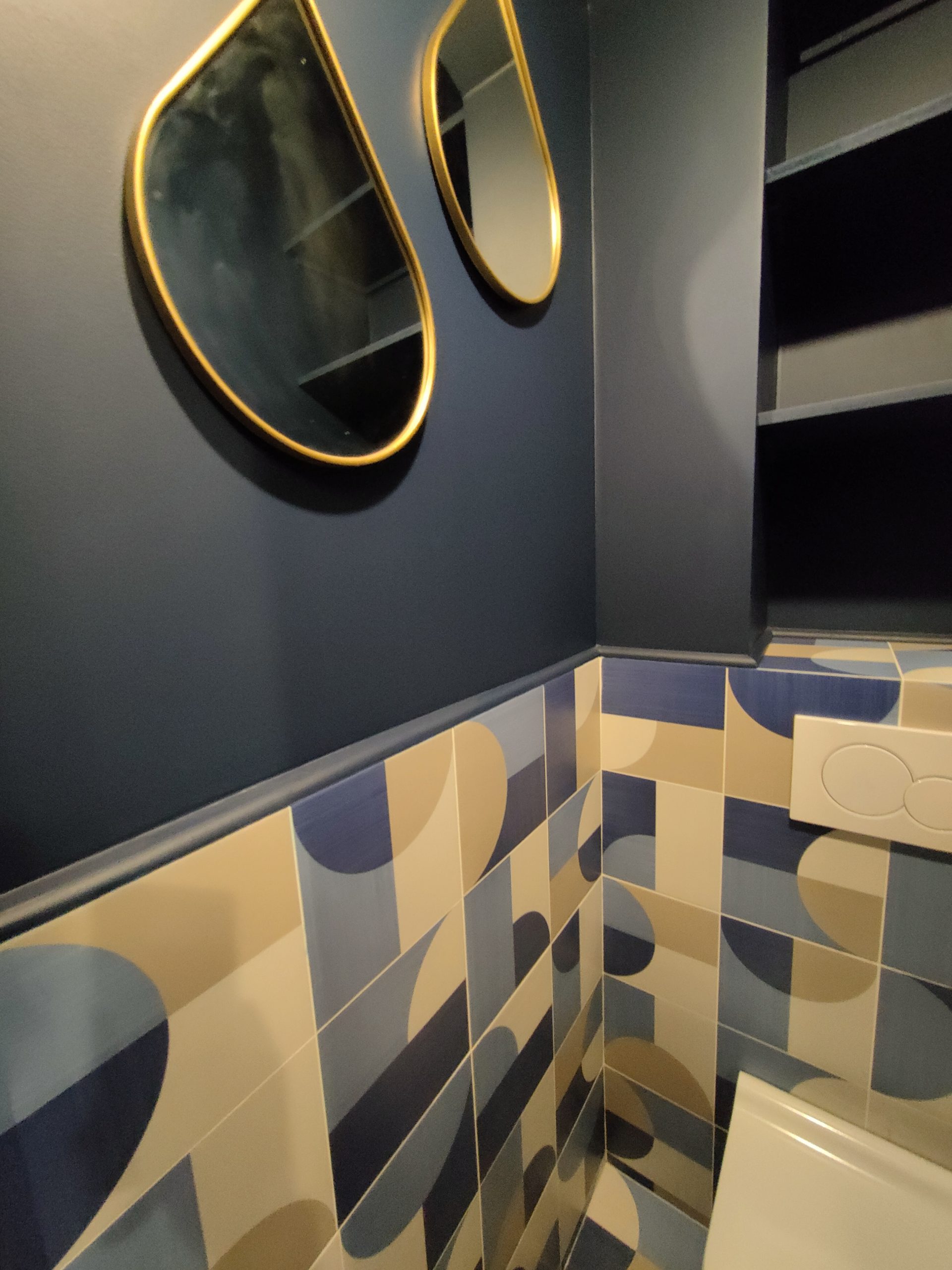 - Pour ajouter de la profondeur et d’apporter une touche de décoration sympa à votre mur, vous pouvez combiner peinture et carrelage.
